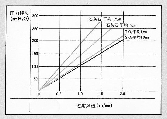 不同粒徑粉體其過(guò)濾風(fēng)速及溫度變化同阻力損失的關(guān)系(見(jiàn)表三、表四)。