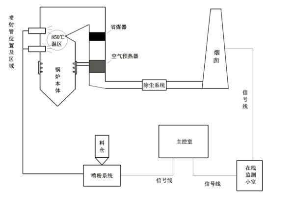 噴射系統(tǒng)主要由羅茨風機、高分子活性物脫硝劑料倉、螺旋喂料器、管道和噴槍組成。